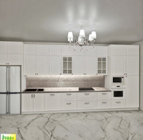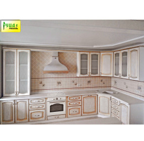 Кухня белая с фасадами МДФ ПВХ с золотой патиной