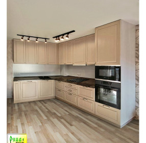 Кухня классическая с бежевыми фасадами МДФ пленка