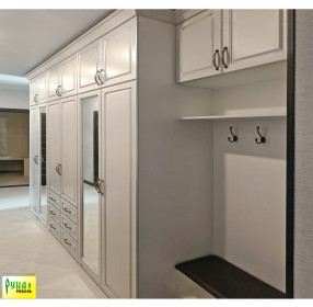 Прихожая с фасадами МДФ, двери купе, мягкие элементы